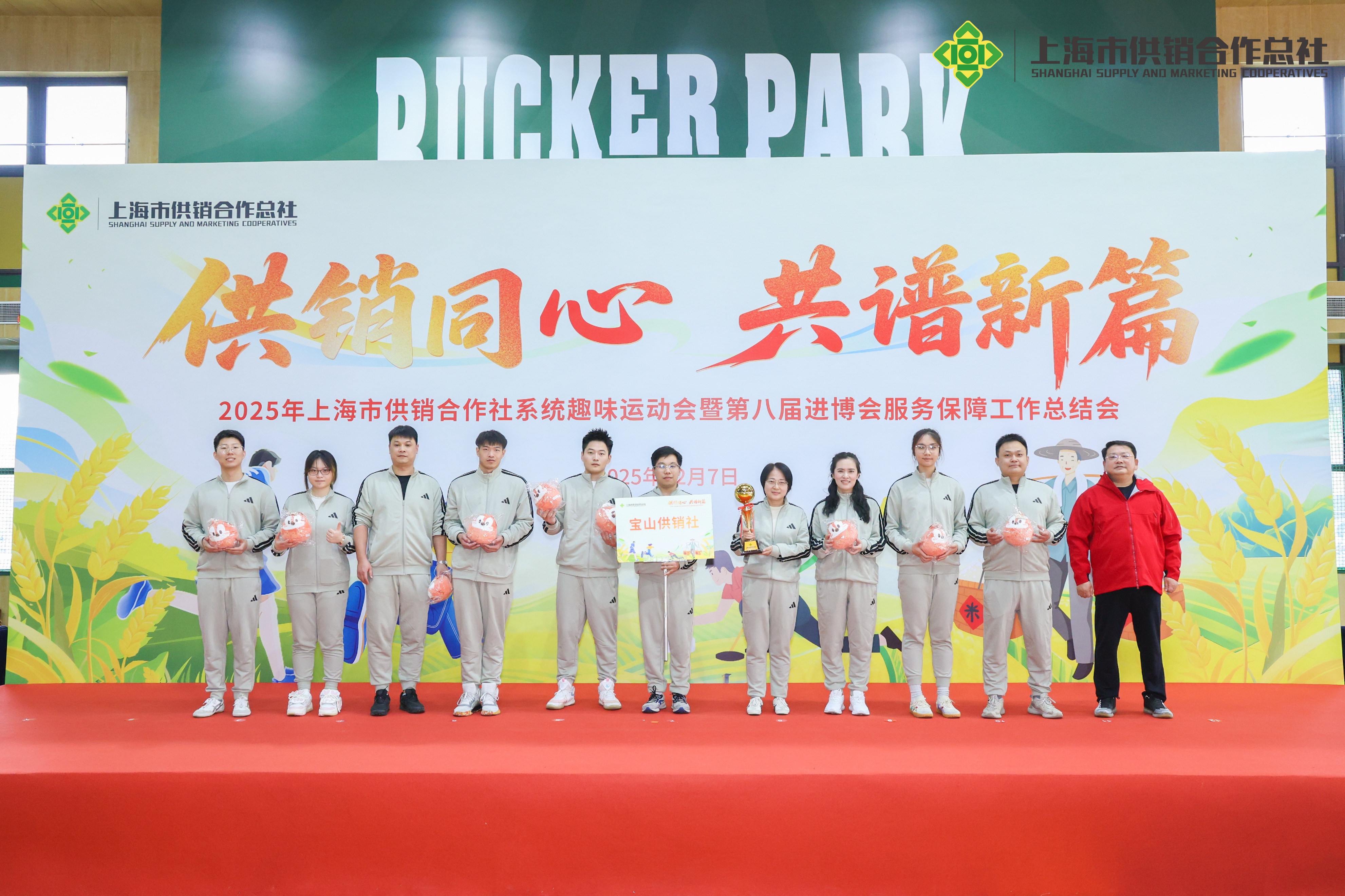 12月7日,“供销同心 共谱新篇”——2025年上海市供销合作社系统趣味运动会暨第八届进博会服务保障工作总结会圆满举行。宝山供销社代表队在党委书记、理事会会长、主任王心雄,党委副书记、纪委书记、工会主席归红华的带领下,精神抖擞、斗志昂扬,充分展现了宝山供销人团结协作、奋发有为的精神风貌。