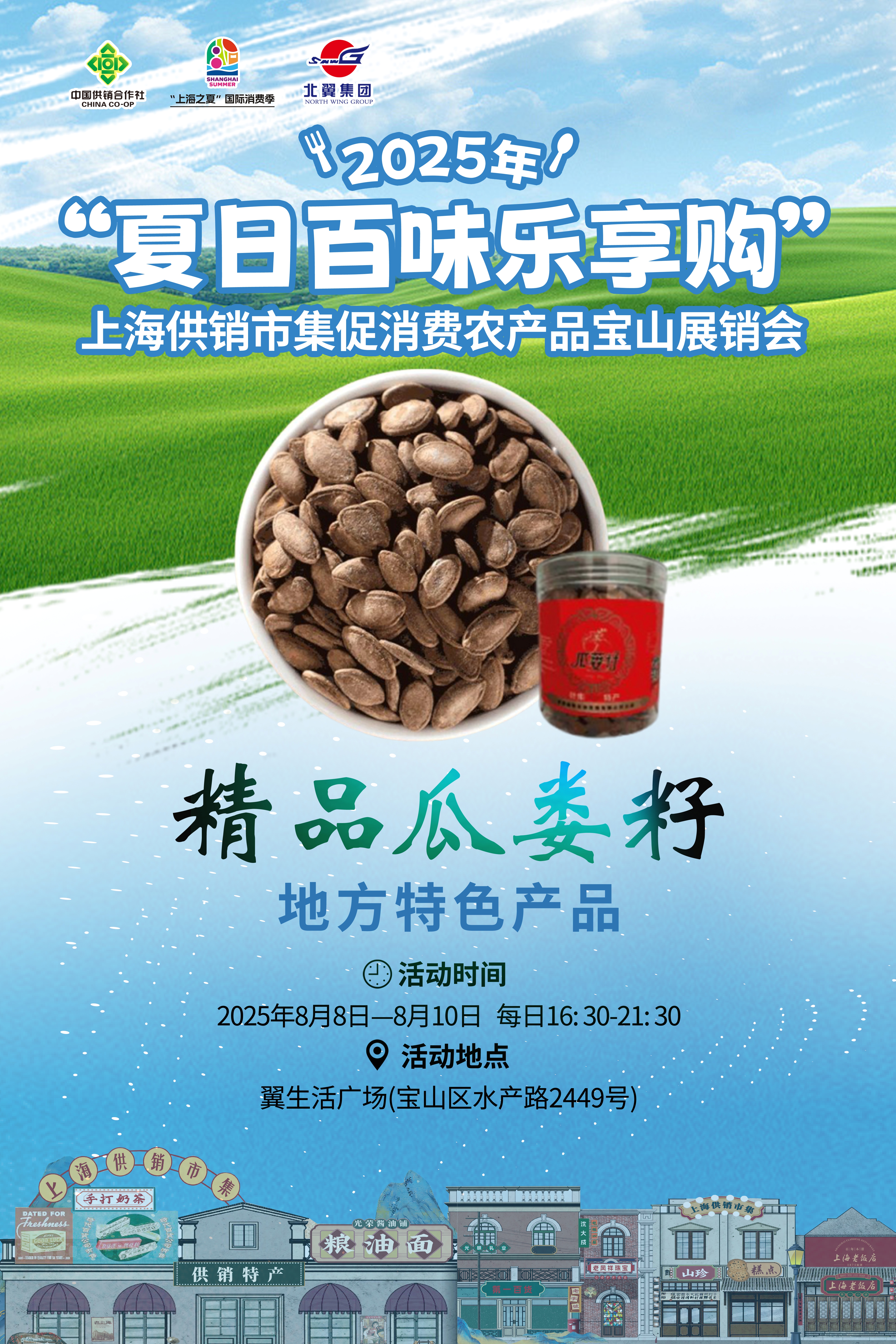 季夏将末,暑意渐消。宝山供销社将在8月8日至10日举办2025上海供销市集促消费农产品宝山展销会。作为第二届上海供销市集宝山供销社站,本次活动以“立秋”节气为契机,为您开启为期三天的限时烟火市集。诚邀您与亲朋好友一同开启寻味之旅,逛夜市、享美食,抓住夏天的尾巴!